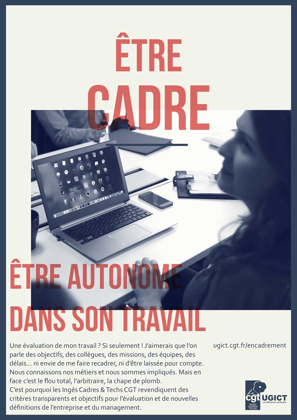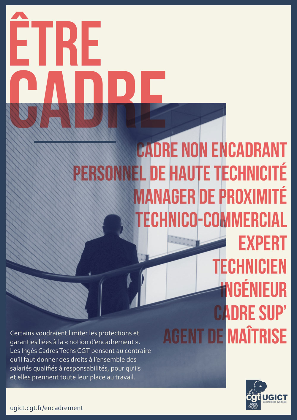 La CGT porte le projet d'un Nouveau Statut du Travail Salarié qui couvrirait l'ensemble des composantes du salariat. Avec l'Ugict, les Ingés Cadres Techs CGT coinçoivent le statut de l'encadrement comme un chapitre de cet ensemble de protections, notamment pour briser l'isolement de ces catégories, modifier les rapports sociaux dans l’entreprise et la conception de la hiérarchie.